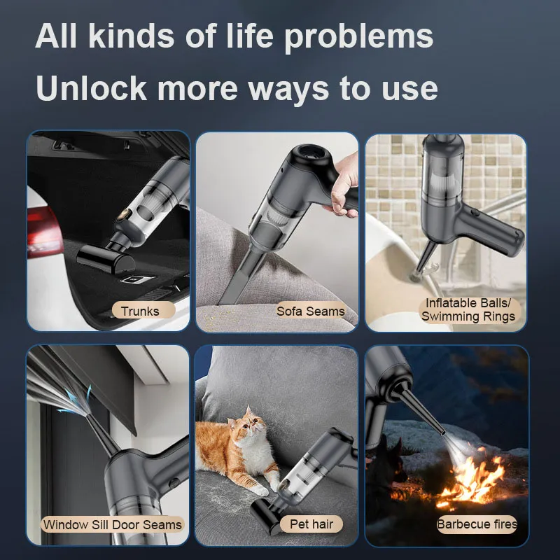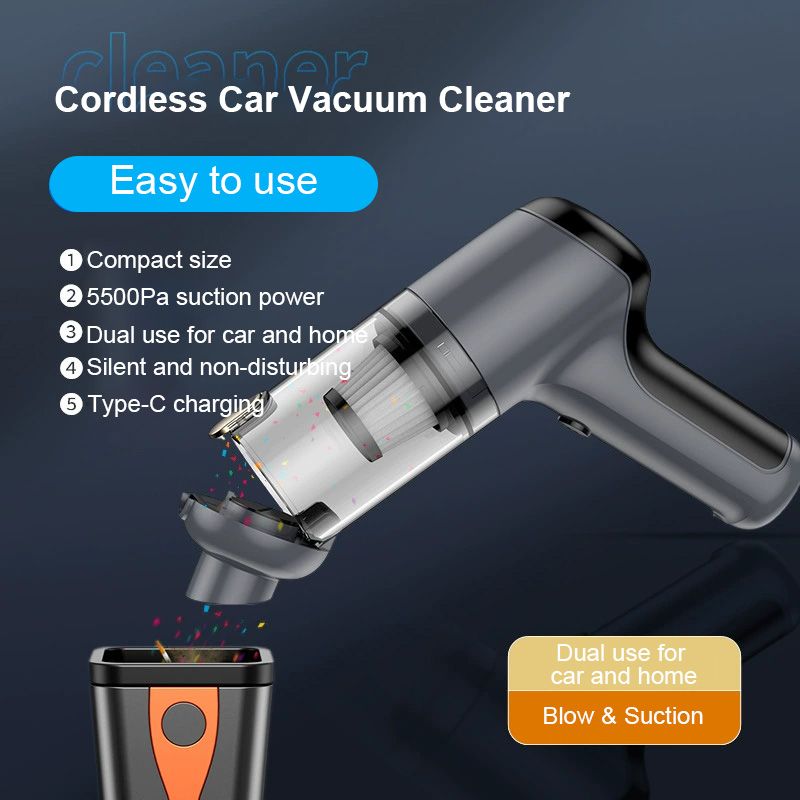 Wireless blowing and suction integrated vacuum cleaner One key dust Hand-held dust blower 45W high power 5500PA super suction car vacuum cleaner type-c charging